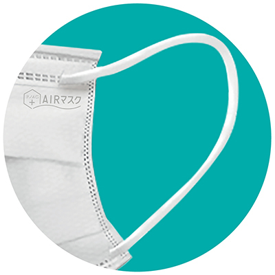 ゴムひもは、耳への負担をやわらげるソフトな平タイプを採用。性能面、機能面ともに安心の日本製となっている。価格は、50枚入りで3278円。ふつうサイズと小さいサイズの2種類を用意している。