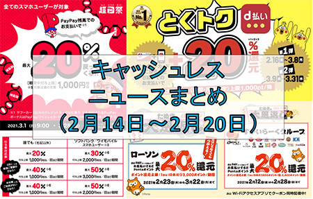 【今週のキャッシュレスニュースまとめ】2月&3月は高還元チャンスが多数! PayPay・au PAY・d払いが新規キャンペーンを発表