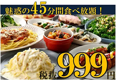 ブッフェ食べ放題特別コースは、45分間の食べ放題となる。