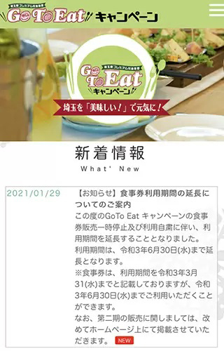 東京都に先行して発売された、神奈川県の飲食店を対象とした「Go To Eat かながわ プレミアム食事券」、埼玉県の飲食店を対象とした「Go To Eatキャンペーン埼玉 プレミアム付き食事券」も、Go To Eat Tokyo プレミアム食事券同様、利用期間が2021年6月30日に延長された。