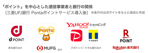 なお、三菱UFJ銀行はNTTドコモと提携し、銀行取引でdポイントがたまるポイントサービスを導入するという報道があったが、2月19日時点で正式発表はない。