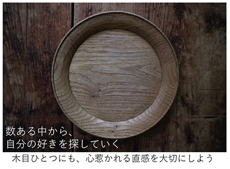 例えば、木のお皿が5枚あるとしよう。その中から好きな木目を探す。5枚もあれば「見れば見るほどわからなくなる」こともあるが、一番最初に目に飛び込んだものが、自分の好きという直感なのだと思う。