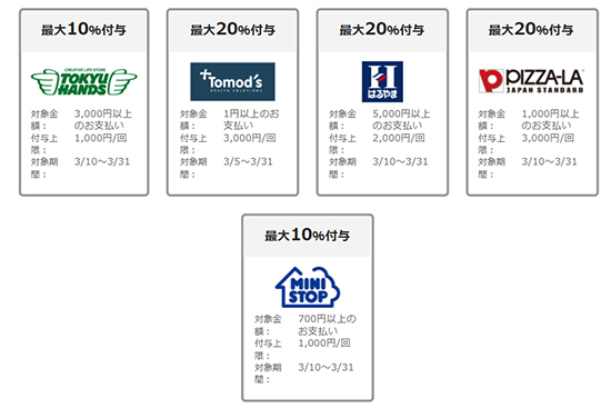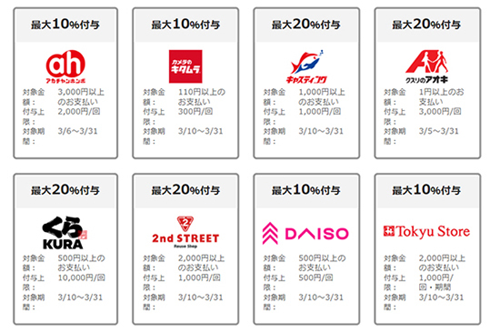 3月のPayPayクーポンの対象はさまざまな業種の店舗が揃っている