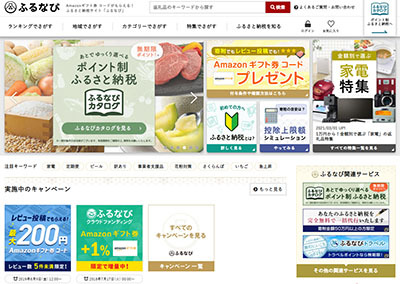 全国1700以上の自治体と30万点以上の名産品を掲載している、大手ふるさと納税サイト。ポイント還元等はないものの、圧倒的に利用者・掲載数が多いことから寄付先が探しやすい。