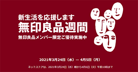 無印良品は3月24日~4月5日の期間、無印良品メンバー限定で10%オフ価格になる「無印良品週間」を実施している。