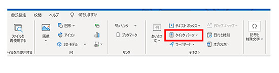 4.挿入タブ > クイックパーツ > 選択範囲をクイックパーツギャラリーに保存 を選択