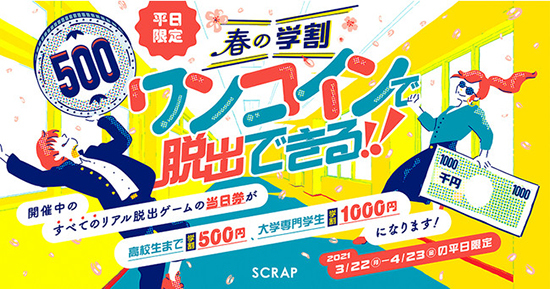 リアル脱出ゲームをワンコインで! SCRAPの春休み学割キャンペーン