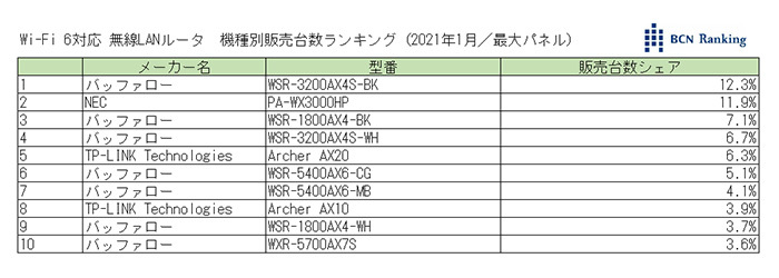 テレワークやオンライン学習、動画視聴などの巣ごもり需要が拡大したことで、通信環境を改善したいという声は高まっている。Wi-Fi 6対応無線LANルータはこうした需要に応える製品として重宝されている。また、最近ではエントリークラスでも最新規格に対応するモデルが登場しており、導入のハードルが下がってきていることも普及に拍車をかけているようだ。
