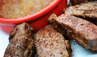 おもなメニューは、焼きたてのステーキ、シーフード、スキレットバーグ、ホルモンなどで、看板料理のザブトンステーキは、ジューシーで肉厚なステーキを絶妙な焼き加減で提供している。ドリンクは、自家製レモンシャワー(レモンサワー)をはじめ、オレンジやグレープフルーツ、イチゴなど、各種フルーツたっぷりのサワーを用意する。そのほか、ビールやハイボール、焼酎、日本酒、ワインなどを取り揃える。税込価格は、フードが288円から、ドリンクが168円。