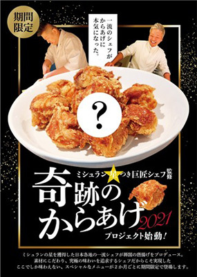 都内では、唐揚げ専門店の数が日々増えており、なかなか差別化が難しい状況が起きている。そうした中、禅閤ではミシュランの星を獲得した店舗の一流シェフとコラボレーションし、禅閤のからあげをプロデュースしてもらう「奇跡のからあげプロジェクト」を始動。全国各地の憧れの名店の味が、素材にこだわり、究極の味わいを追求する、一流のシェフだからこそ実現したスペシャルメニューが完成した。