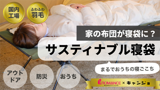 布団から作る「サスティナブル寝袋」が目標金額を達成、キャンプ女子が「Makuake」で