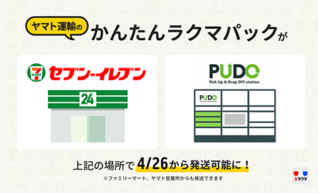 楽天グループが運営するフリマアプリの楽天「ラクマ」は、配送サービス「かんたんラクマパック(ヤマト運輸)」で全国のセブン-イレブン約2万1000店舗(2021年4月1日時点)と非対面を実現した宅配便ロッカー「PUDOステーション」約5800カ所からの発送を4月26日14時から可能にする。