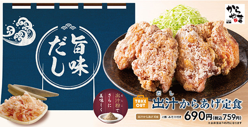 旨味アップの「出汁からあげ」が登場、からやまで期間限定