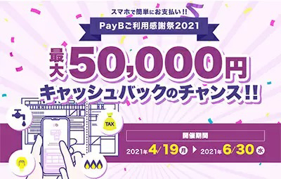 ビリングシステムが提供する請求書払いに特化したスマートフォン(スマホ)決済アプリ「PayB」は、最大5万円キャッシュバックする「スマホで簡単にお支払い!!PayBご利用感謝祭2021~最大50,000円キャッシュバックのチャンス!!」キャンペーンを実施している。期間は6月30日まで。