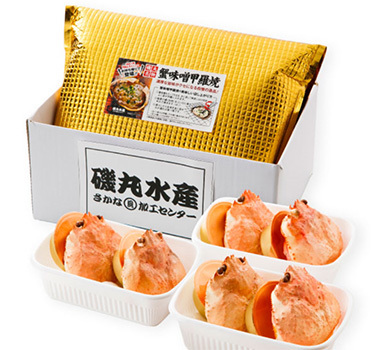 「蟹味噌甲羅焼(6食)」は、濃厚な旨味がクセになる磯丸水産自慢の逸品。店を同じ味を自宅で楽しめる。宅飲みのつまみや、BBQなどにおすすめとなっている。価格は3980円。
