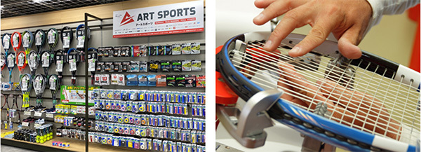 取り扱いブランドは、「ウィルソン」「ヘッド」をはじめ「ヨネックス」など、人気テニスブランドはもちろん、テニスボール・テニス小物の取り扱いやガット張りなどのアフターフォローも受け付ける。