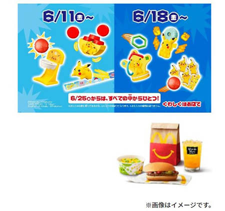 日本マクドナルドは、ハッピーセット「ポケモン」を6月11日から期間限定で全国のマクドナルド(一部店舗除く)で販売する。価格は470円から500円。