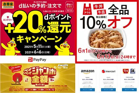吉野家は、6月1日に牛丼・牛皿の全サイズを対象に10%割引キャンペーンを開始した。松屋は、創業55周年記念としてスマホ決済サービス「PayPay」とコラボしたキャンペーンを開催中。各牛丼チェーンのキャンペーンは、キャッシュレス決済とひも付いたものが多い。もし利用したことのない決済手段があるなら、これを機に登録してみるのもいいだろう。