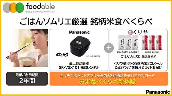パナソニックは、キッチン家電のレンタル事業と食のサービスを組み合わせた月額3980円のサブスクリプションサービスに本腰を入れる。食のコミュニティサービス「EATPICK」を新たにアプリ版で提供。合わせて、キッチン家電のレンタルと食のサービスを組み合わせた「foodable」と「おいしく腸活」の二つの新サービスを本格導入する。