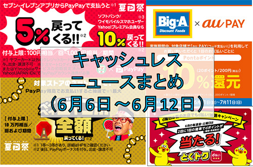 【今週のキャッシュレスニュースまとめ】6月&7月にお得なスマホ決済は? PayPay・au PAY・d払いが新規キャンペーンを発表