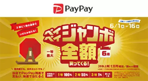 6月15日にはPayPay銀行口座登録者限定で、対象のドラッグストアで最大全額戻ってくる「ペイペイジャンボ」が始まる。内訳は、1等が100%還元、2等が10%還元、3等が1%還元で、還元上限が1万円相当/回・期間。ただし、参加資格であるPayPay銀行口座を、5月31日までに登録しておくのが条件になっている。期間は6月30日まで。
