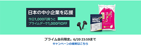 意外と盲点なのが「中小企業応援キャンペーン」。こちらは、対象商品を6月7~20日の期間に1000円以上購入すると、プライムデーで使える1000円分のクーポンが発行されるというものだ。1人につき1回のみ有効ながら、必ずもらえるので、こちらもおすすめ度は高い。特設ページで1500円以下の対象商品をまとめているので、そちらからチョイスするのもありだ。