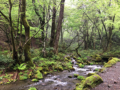 ブナ林は、非常に高い保水力によって雪解け水や雨水をしっかりと蓄える力を持っている。ブナの木に耳を近づけると、時期によっては水を吸い上げる音がするほど。20~30年かけて腐葉土によって栄養価の高い土壌をじっくりと濾過されながら、地表へと湧き出してくる。いわば、大山は鳥取県に存在する大きな濾過装置だ。