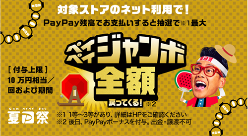 また、一部のオンラインショップを対象とした「夏のPayPay祭 ペイペイジャンボ(オンライン)」も同時開催中。抽選で決済金額の最大全額が戻ってくるというもので、還元上限は10万円相当/回・期間。5%還元と対象が被っている店舗では、さらにお得になるチャンスだ。