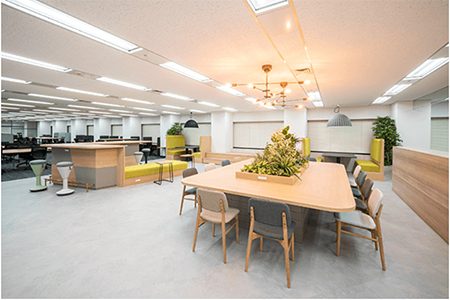 また、執務室には、オンラインコミュニケーションをより快適にする「AIインタラクティブボード」や「TELECUBE byアイリスチトセ」などのワークブースを複数設置し、ニューノーマルの働き方を推奨する。
