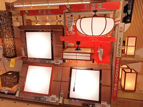 最後に京都の老舗店とコラボした売り場も注目。西陣織金襴を使ったエディオン限定商品や、おりがみ文化を取り入れたエアコンのオリテウム室外機カバー、漆塗りをあしらった照明器具など同店限定の商品も数多く展開する。