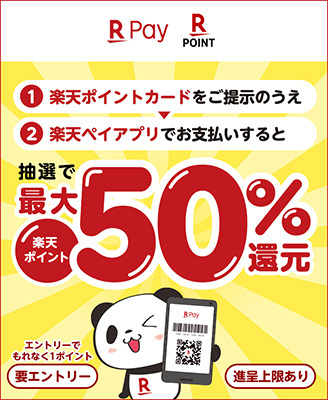 楽天ペイは「楽天ペイと楽天ポイントカードを使って抽選で最大50%ポイント還元キャンペーン!」を8月23日から開催中。エントリーのうえ、対象店舗で楽天ポイントカードを提示して1ポイント以上獲得し、楽天ペイアプリのコード表示・QR読み取りで期間中合計500円以上を支払うと、抽選で400人に期間中の決済額の50%(上限1万ポイント)、2万人に100ポイントをプレゼントする。