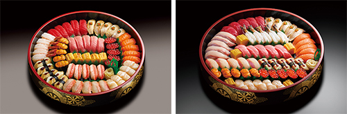 対象となる商品は、雅、美濃が北海道エリア、雅、扇が東日本・中部・中国・四国・九州・沖縄エリア、美濃、瑞穂が関西エリアと岡山県で、全て1人前~5人前からの選択。地域によってネタの種類が一部異なる。