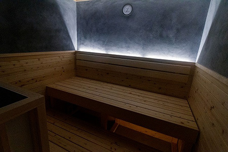 サウナ室は、2人まで同時利用が可能。さらに男女での混浴もOK。夫婦やカップルでの利用もできる貴重なサウナ施設となっている。サウナ室内は広々としているので、2人でも狭く感じることもない。