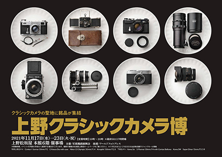 上野クラシックカメラ博は、中古カメラ販売イベントで、開催時間は10時~20時(最終日は17時閉場)。