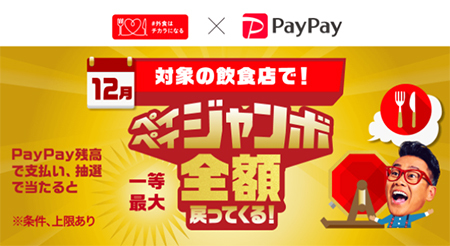 スマートフォン決済サービス「PayPay」は12月1日に多数のキャンペーンを開始した。そのなかで注目したいのが、抽選で全額戻ってくる「ペイペイジャンボ」だ。定番のキャンペーンだが、12月は対象店舗の異なる3種類が開催される。