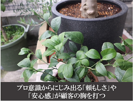 数日後、購入した木を配達してもらい、大きいこともあって鉢植えをお願いしていた。配達に来た人も60代くらいの男性。笑顔で挨拶した後、鉢植えをするにあたって植物の正面、幹が伸びる方向を予測して位置を決めるなど、丁寧に説明してくれる様子は店で対応してくれた男性同様、頼もしく安心感があった。