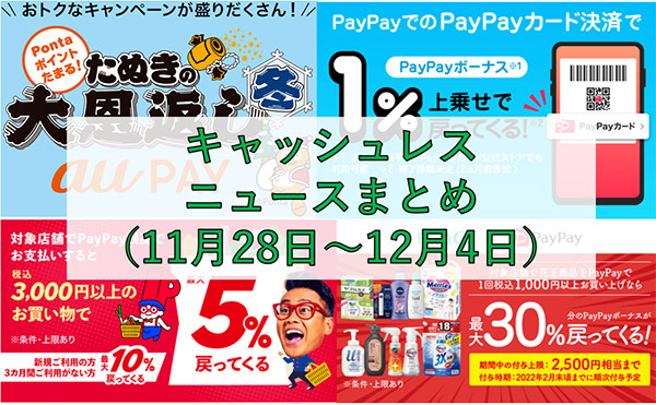 【今週のキャッシュレスニュースまとめ】忘年会やプレゼント購入にも使える! 12月に得するPayPayやau PAYのキャンペーンは?