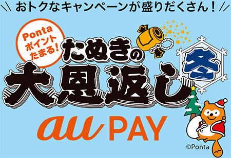 au PAYは12月1日に最大20%還元キャンペーン「たぬきの大恩返し 冬」を開始した。au PAY支払いの対象店舗で「初めて同サービスを利用する、もしくは9月~11月の利用がないユーザー」は最大20%還元、それ以外のユーザーは最大10%還元になる。還元上限は1au IDあたり500ポイント/回、2000ポイント/期間(コード支払いとネット支払いでそれぞれ1000ポイント)。