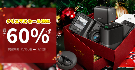 AUKEY(オーキー)は、クリスマス、お歳暮、年末年始の様々なイベントに向けて、便利にお得に買い物ができるよう、12月13日から26日までAUKEY公式オンラインショップで「クリスマスセール2021特集」を開催する。