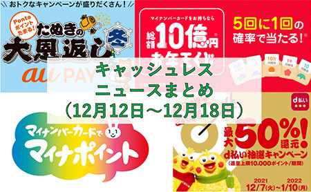 【今週のキャッシュレスニュースまとめ】年末年始はマイナポイントにも再注目! PayPay・au PAY・d払いはお得なキャンペーンを開催中