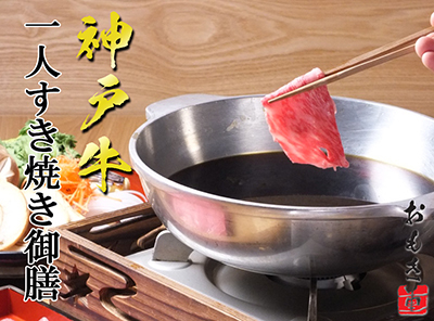 提供内容は、季節の前菜3点盛、本日のお椀、旬のおしんこ、神戸牛一人すき焼き、御飯となる。
