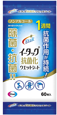 粘着クリーナーでは掃除しにくい細かい場所はウェットシートで掃除すると良い。通常のティッシュなどで掃除すると逆に花粉を舞い上げる可能性があるため、濡れたウェットシートの使用がおすすめだ。除菌・抗菌効果があるウェットシートならさらに一石二鳥。エーザイのイータック抗菌化ウェットシートなら拭いてから1週間抗菌作用が持続するという。