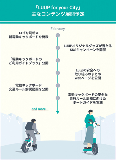 リニューアルにあわせ、「LUUP for your City」と銘打って、電動キックボードの安全な社会実装に向けたLuupのこれまでの取り組みと目指す未来を知ってもらえるコンテンツを展開する。