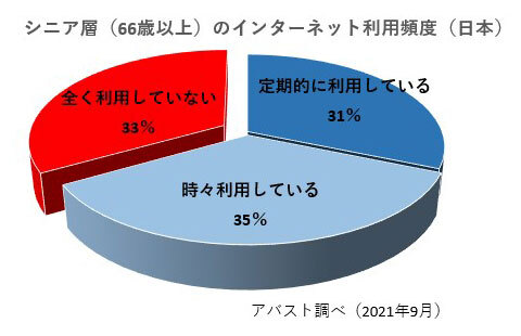 66歳以上でインターネットを全く利用していない人は3割を超えているという。セキュリティソフト会社のアバストが実施した調査で分かった。55歳から65までは90%が「定期的に利用している」としたが、66歳以上では「全く利用していない」が33%もあった。インターネットを利用していない理由として、「複雑すぎる」が29%で最多。そのほか、「インターネットに接続できるデバイスがない」(18%)、「インターネットを利用するには年齢が高すぎる」(18%)などと並んで、「オンライン詐欺や脅威が心配」(18%)とする回答も多かった。巧妙なフィッシングメールを筆頭に危険がそこここに隠れている現状では無理もない。