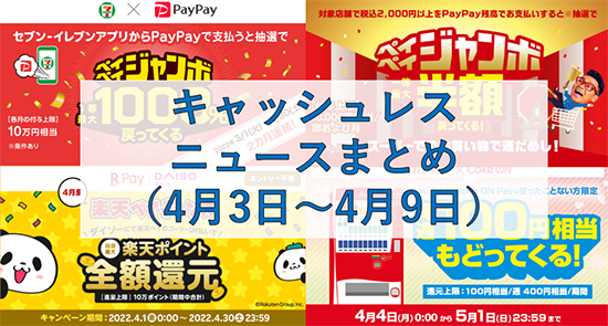 【今週のキャッシュレスニュースまとめ】4月はPayPay・au PAY・楽天ペイでお得なキャンペーン、かながわPayの総額70億円還元は終了間近