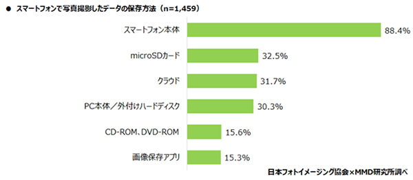 スマホで撮影した写真の保存先に関する、日本フォトイメージング協会とMMD研究所の調査