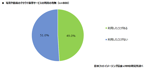スマホの写真や動画の保存にクラウドを使用したことがある人の割合は49.0%と、ほぼ半数に上った。スマホカメラユーザーの間ではクラウドストレージの利用が広がってきている。
