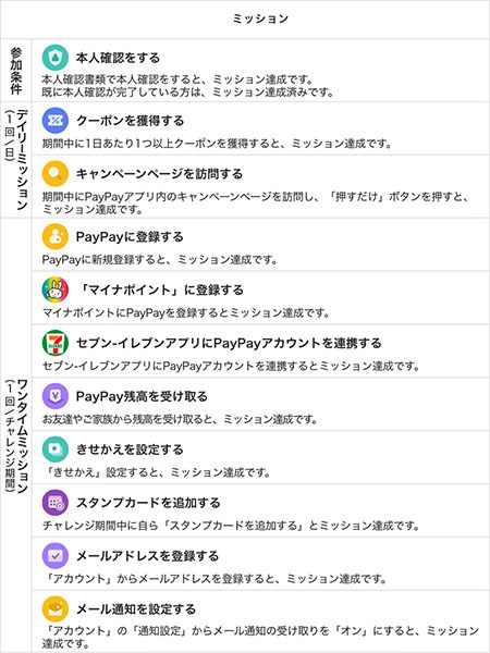 くじは「セブン-イレブンアプリにPayPayアカウントを連携」や「PayPayクーポンの獲得」などのミッションをこなすと達成度に応じた回数を引くことができる。当選ポイントは1等が1000ポイント、2等が100ポイント、3等が10ポイント。
