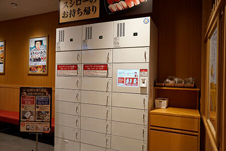 またスシローでは、一部店舗にて、持ち帰り商品をスムーズに、スタッフと接触することなく受け取れるシステム「自動土産ロッカー」を導入している。スシロー公式アプリで商品を予約すると、メールでコードが届く。そのコードをロッカーに読み込ませると、温度管理されたロッカーから商品を受け取ることができる。