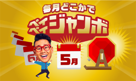 5月のPayPayは幅広い店舗でペイペイジャンボを開催している。対象店舗でPayPay決済するとくじで最大全額が戻ってくるというもので、ユーザーにはおなじみのキャンペーンだ。飲食では松屋、エンタメではTOHOシネマズ、家電ではイーベストなどが対象となっている。